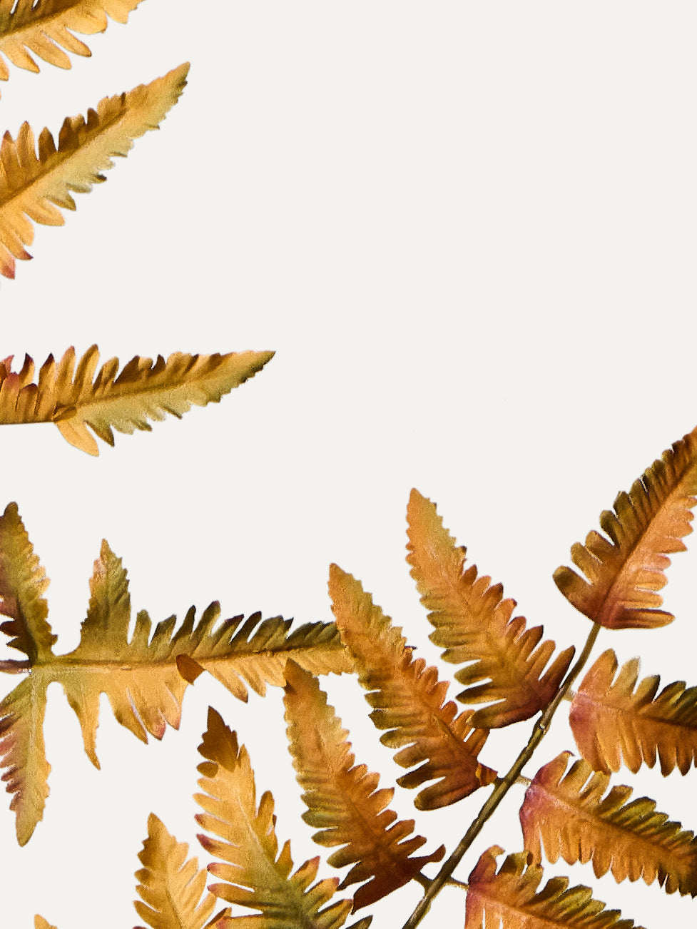 Fern branch in yellow and red, a detailed artificial flower branch made of Silk-ka quality with soft autumn tones. At 108 cm long, it adds warmth and naturalness to any artificial flower bouquet.