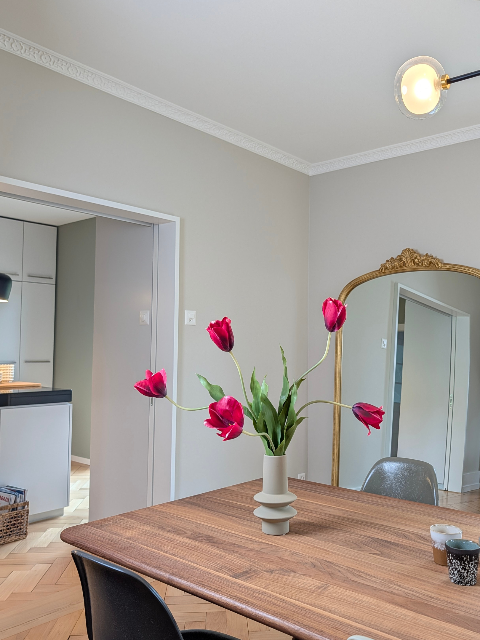 Silkhaus tip: In a simple vase, the red tulips unfold their full effect – ideal for minimalist interiors with a touch of drama.