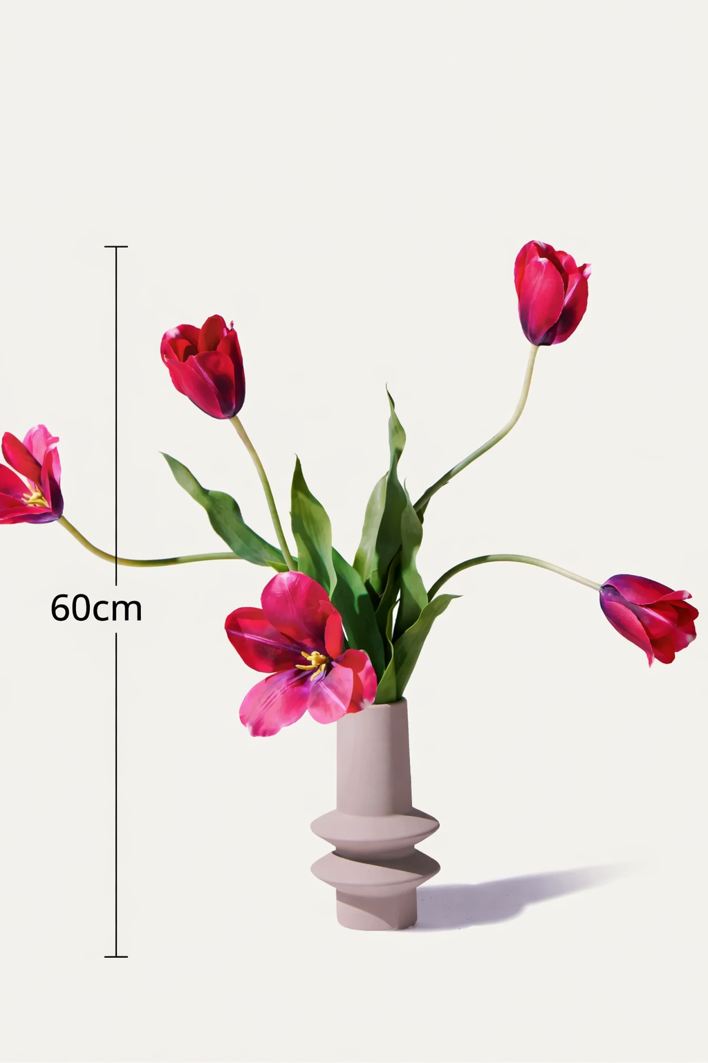A statement in red. The Mulberry, 60 cm tall , consists of vibrant red tulips – powerful, clear, pure. The curved stems and rich flower heads look like a painting: intense and stylish.