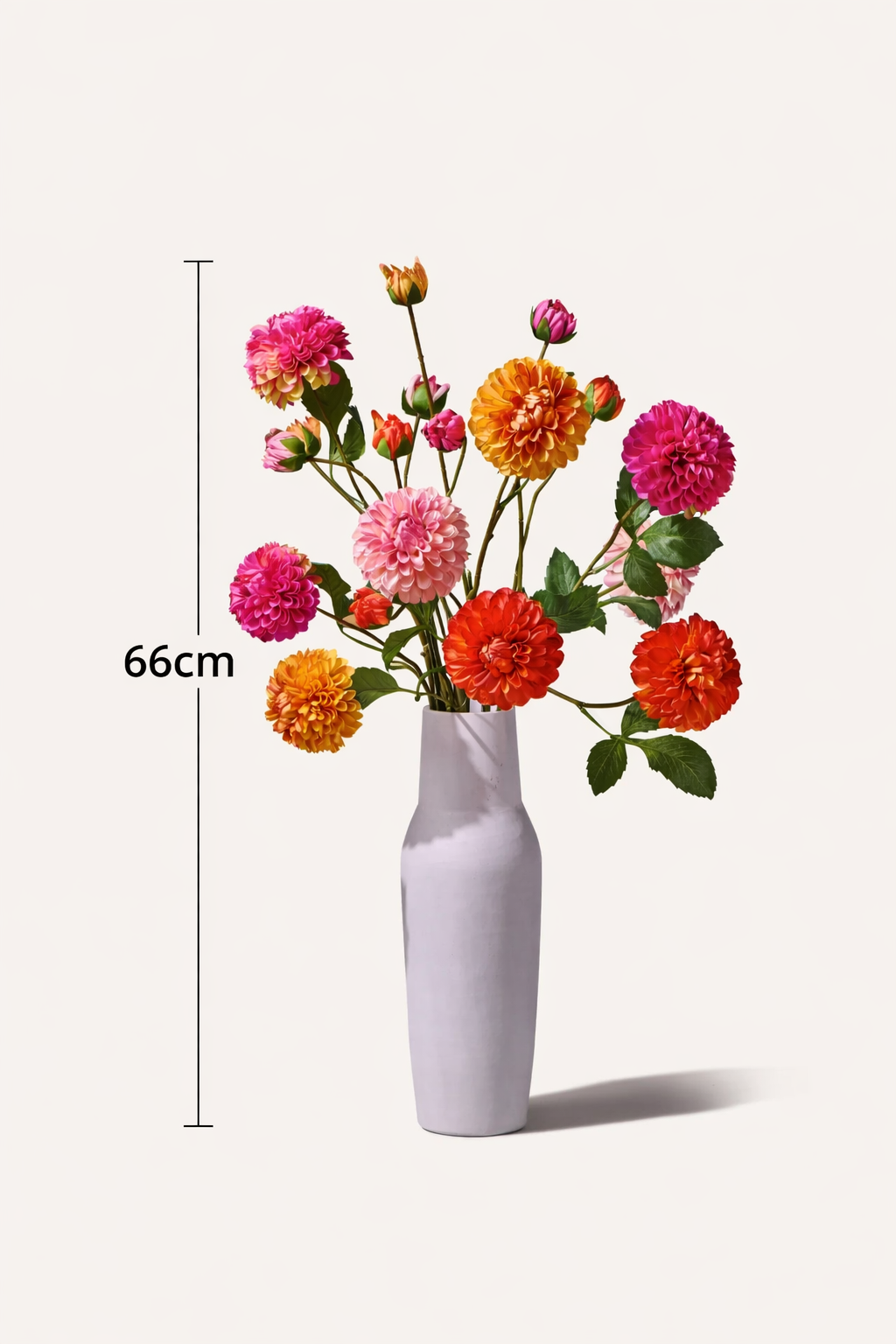 Bunt und voller Freude. The Raspberry, Höhe 66 cm, aus ausdrucksstarken Dahlien bleibt Saison für Saison stilvoll und zeitlos. Ein heiteres Statement, das beständig strahlt.