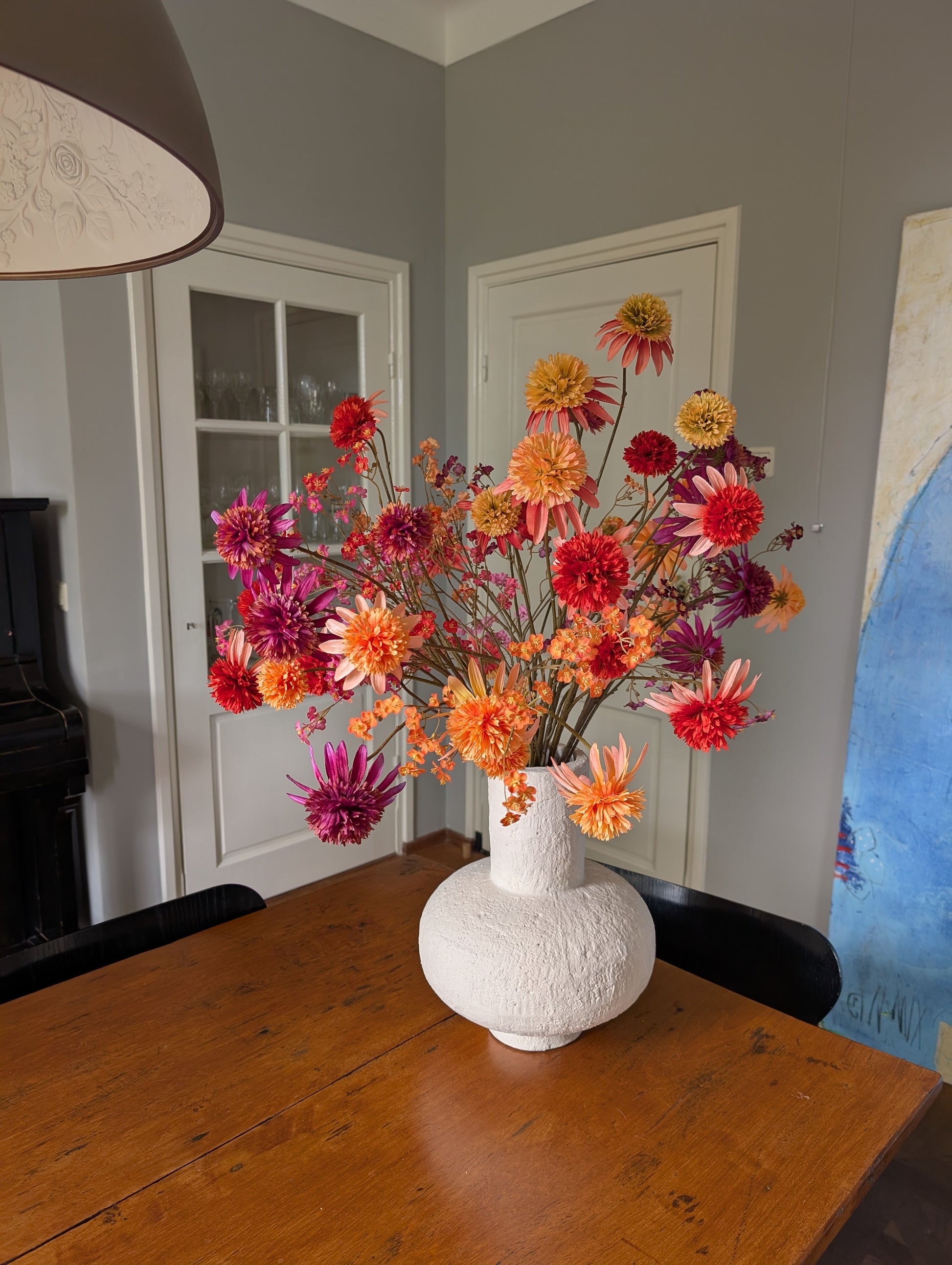 Dein Zuhause, dein Stil. Unsere Kunstblumen-Bouquets und Single Kunstblumen werden von Hand arrangiert – wie auf den Fotos, aber mit Spielraum für dich. Die Stiele kannst du ganz einfach leicht biegen, um dein Bouquet individuell in Szene zu setzen. Egal ob Kunstrosen, Kunsttulpen oder andere Kunstblumen: Du entscheidest, ob du den Look wie auf dem Bild behältst oder deine eigene Form kreierst.